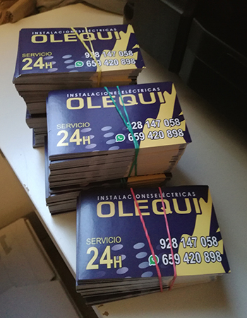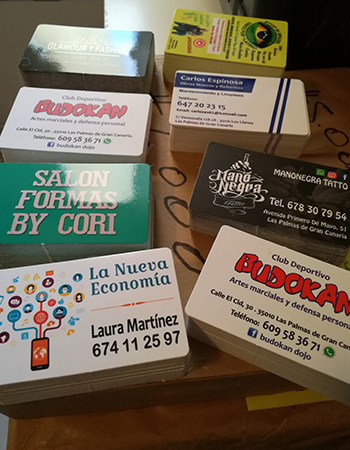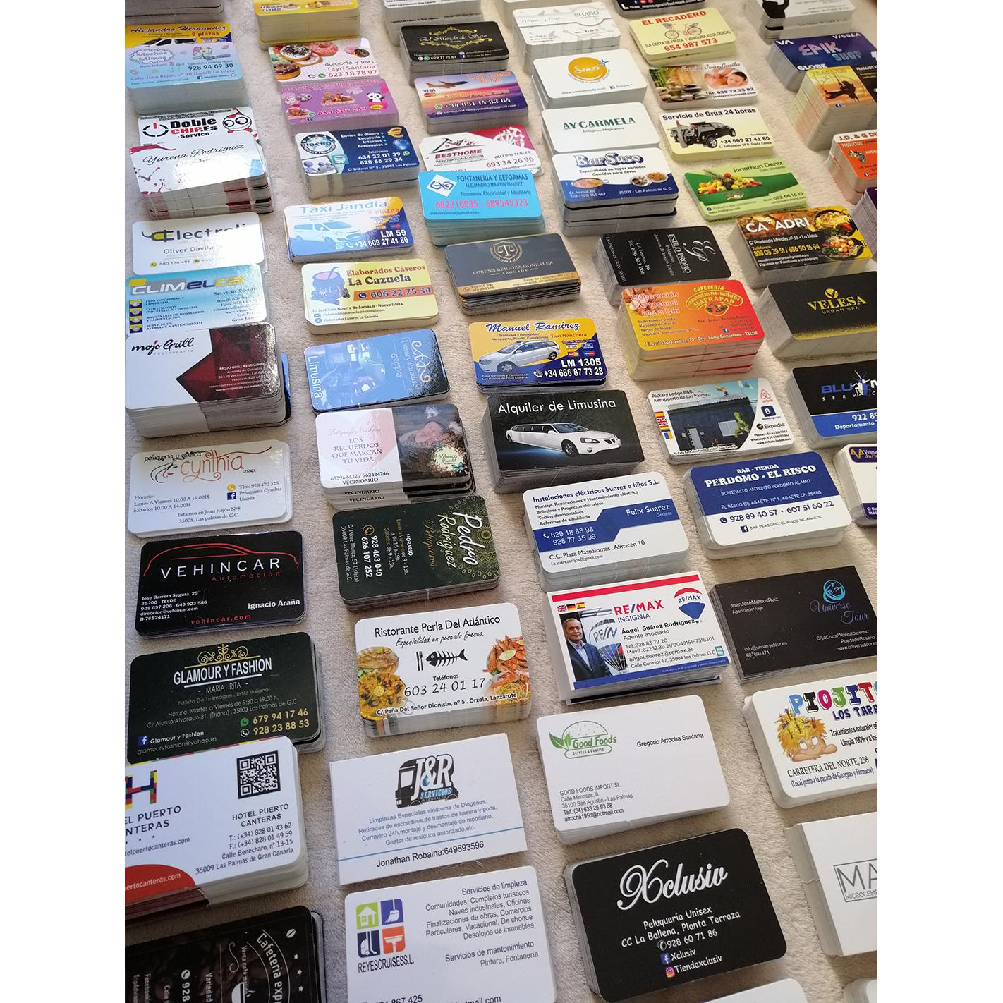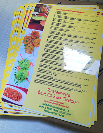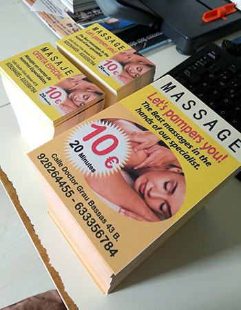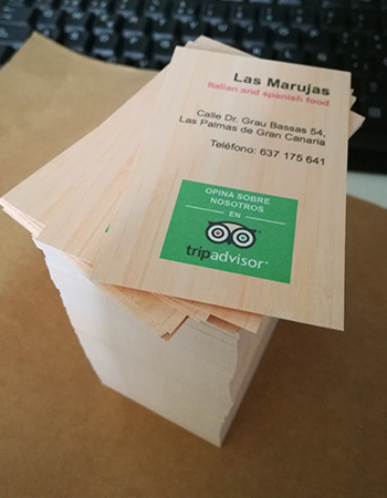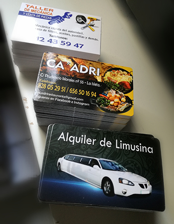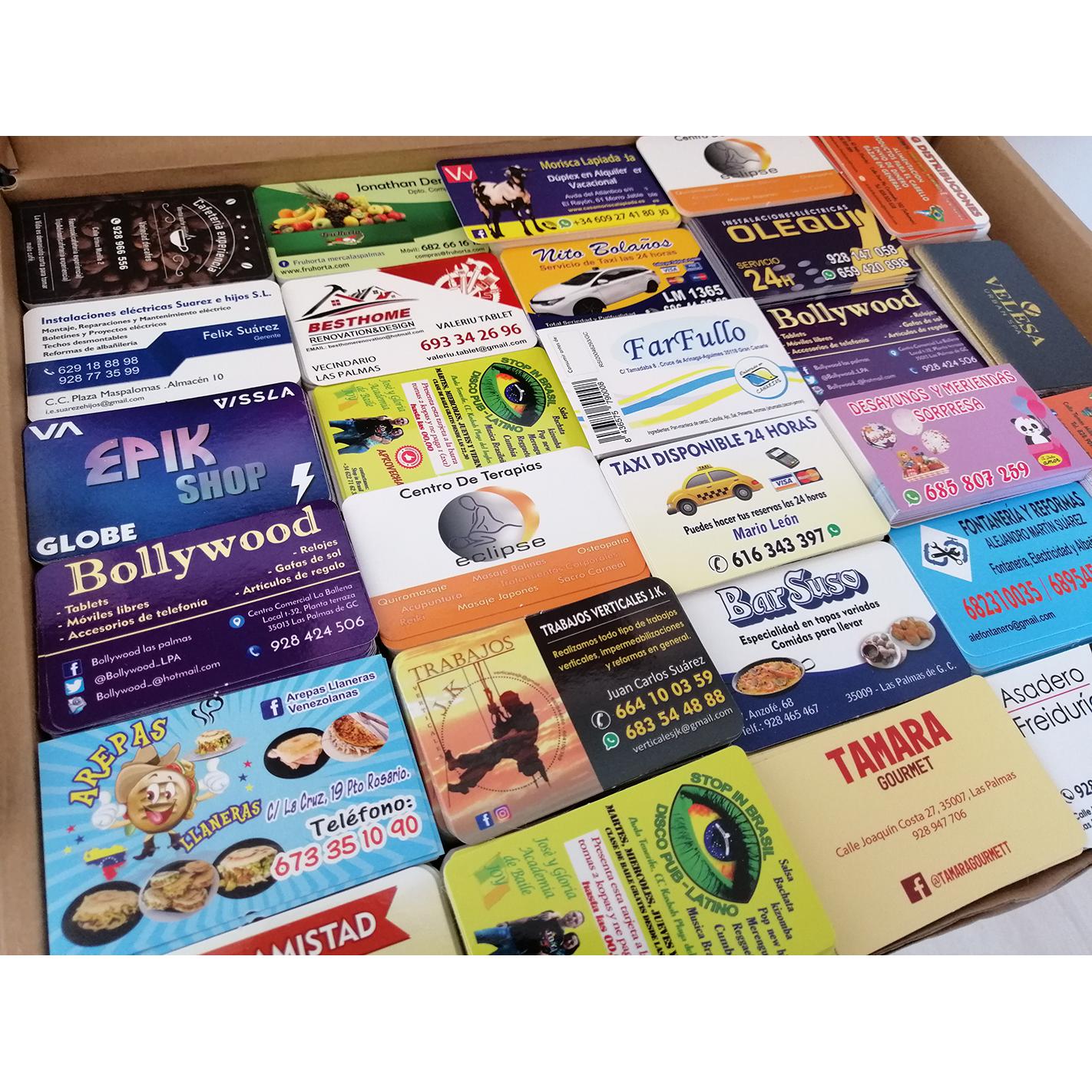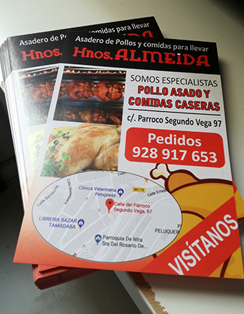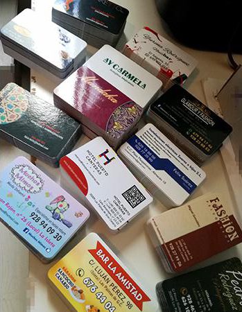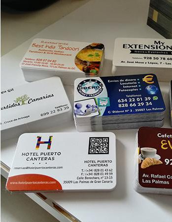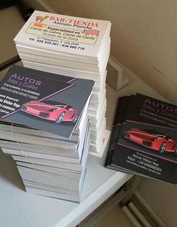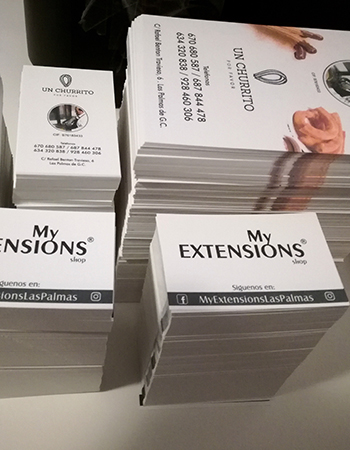 Impresión de Tarjetas de visita, Flyers, cartas de menú y pegatinas para buzoneo en grandes cantidades para tiendas de Canarias.