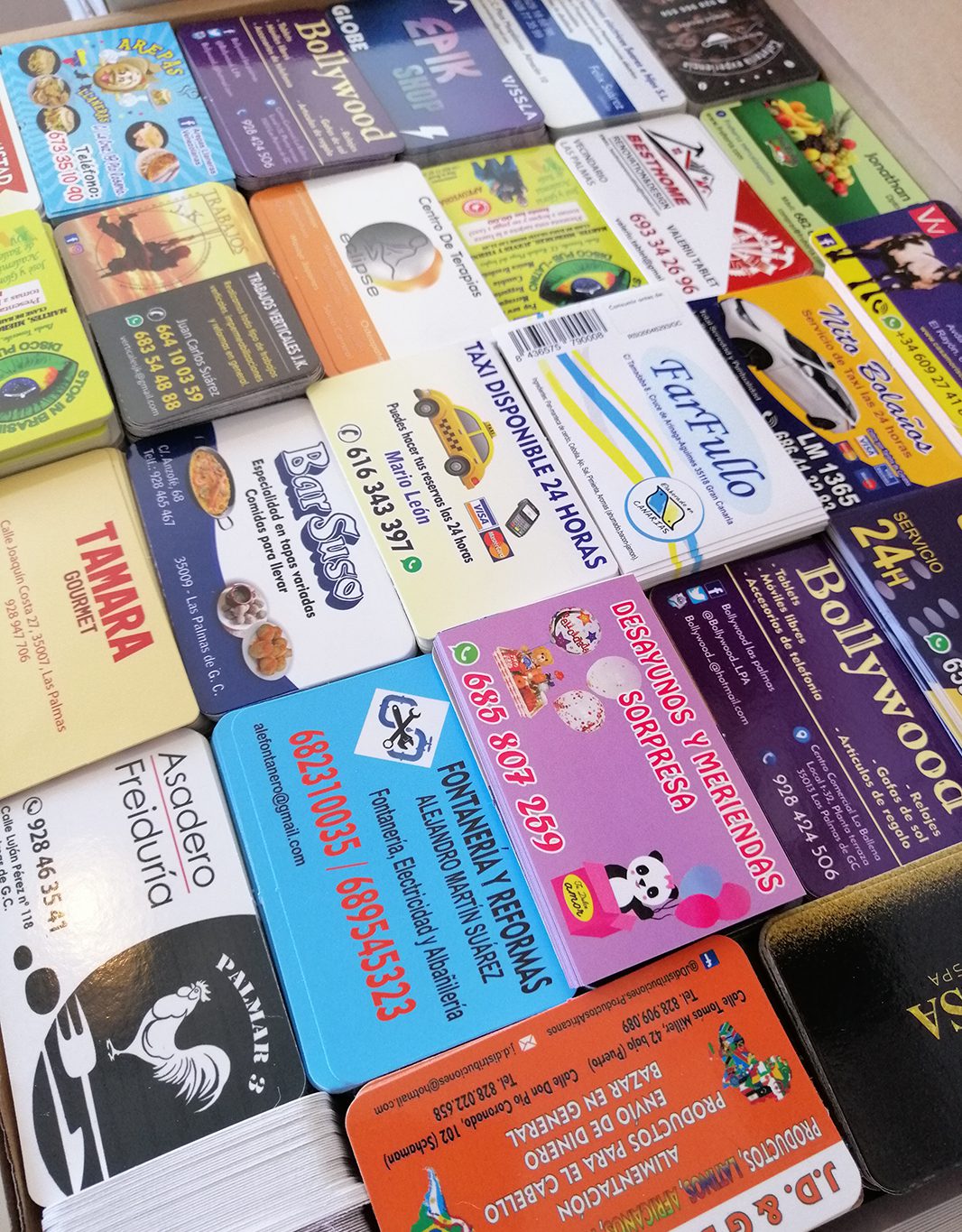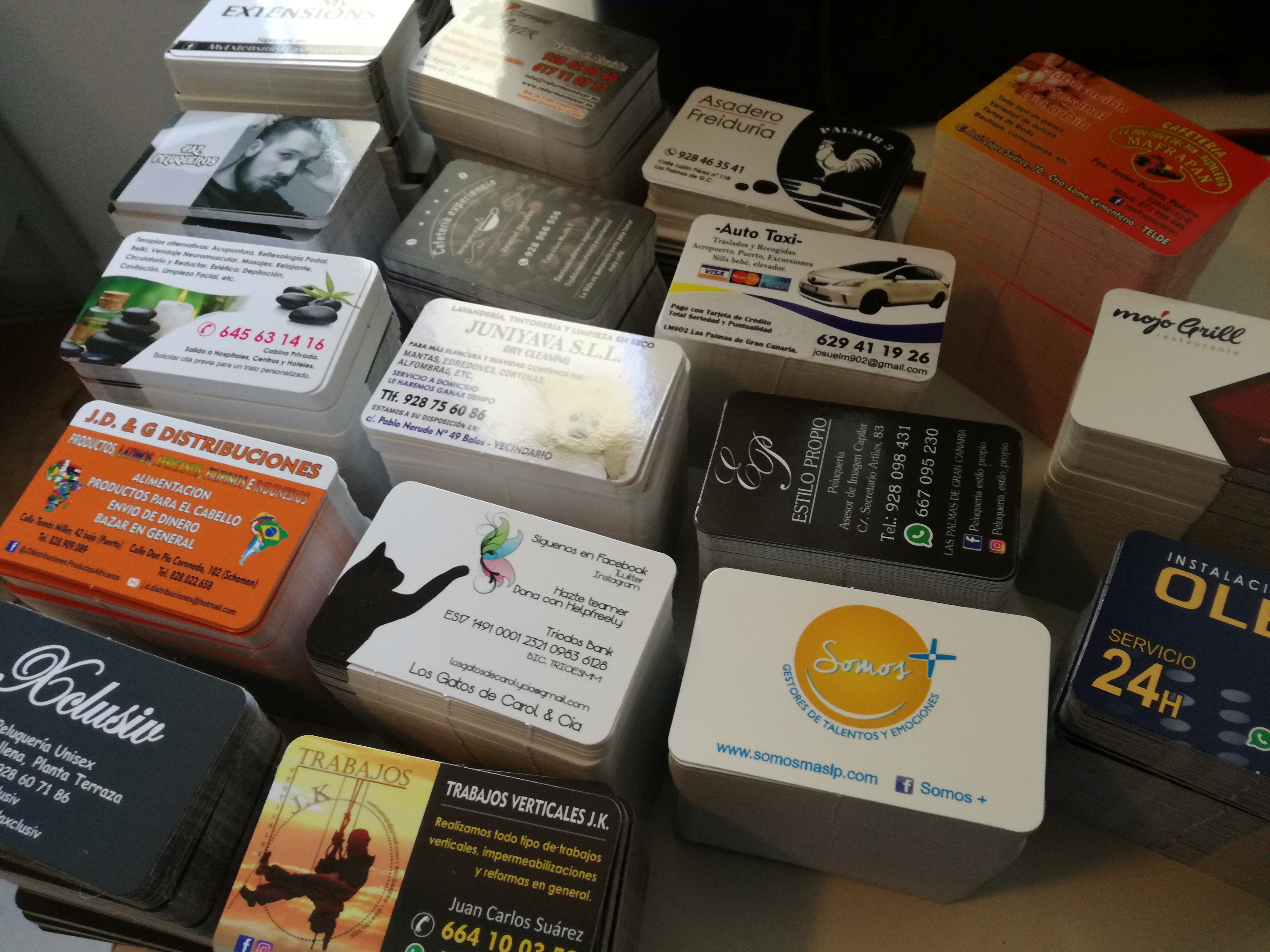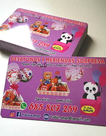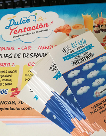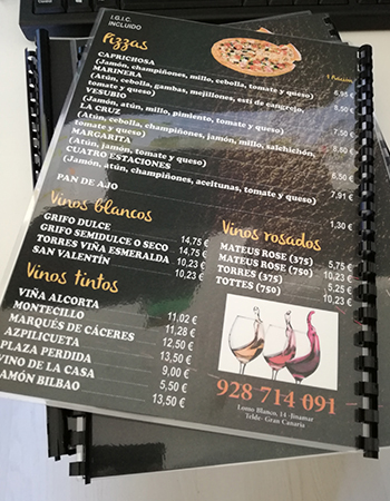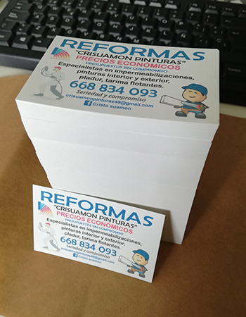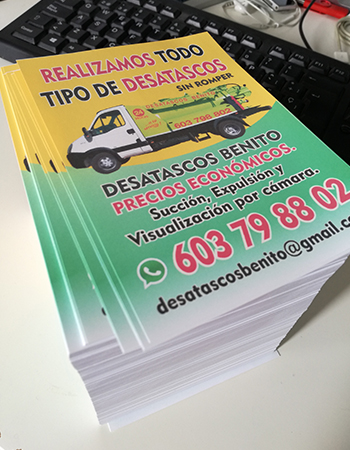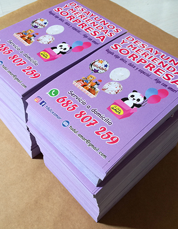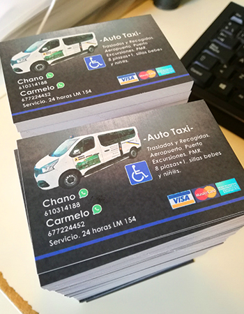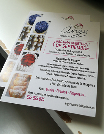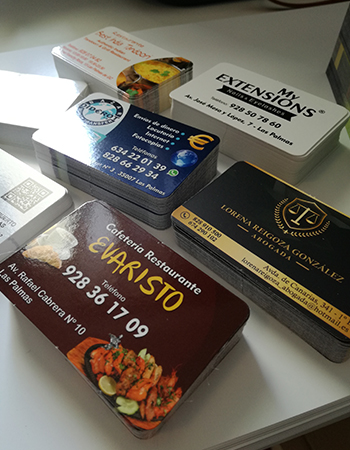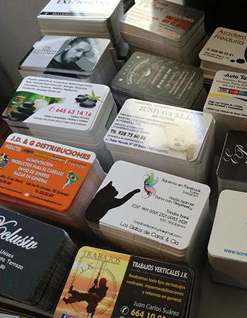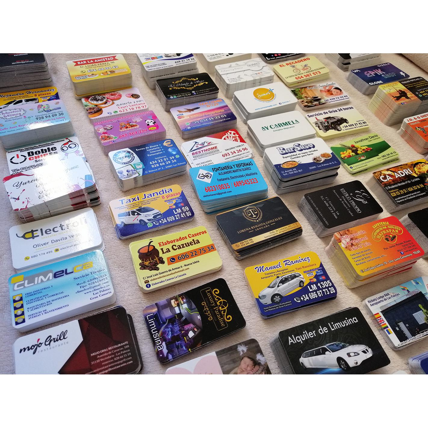 Impresión de Tarjetas de visita, Flyers, cartas de menú y pegatinas para buzoneo en grandes cantidades para tiendas de Canarias.