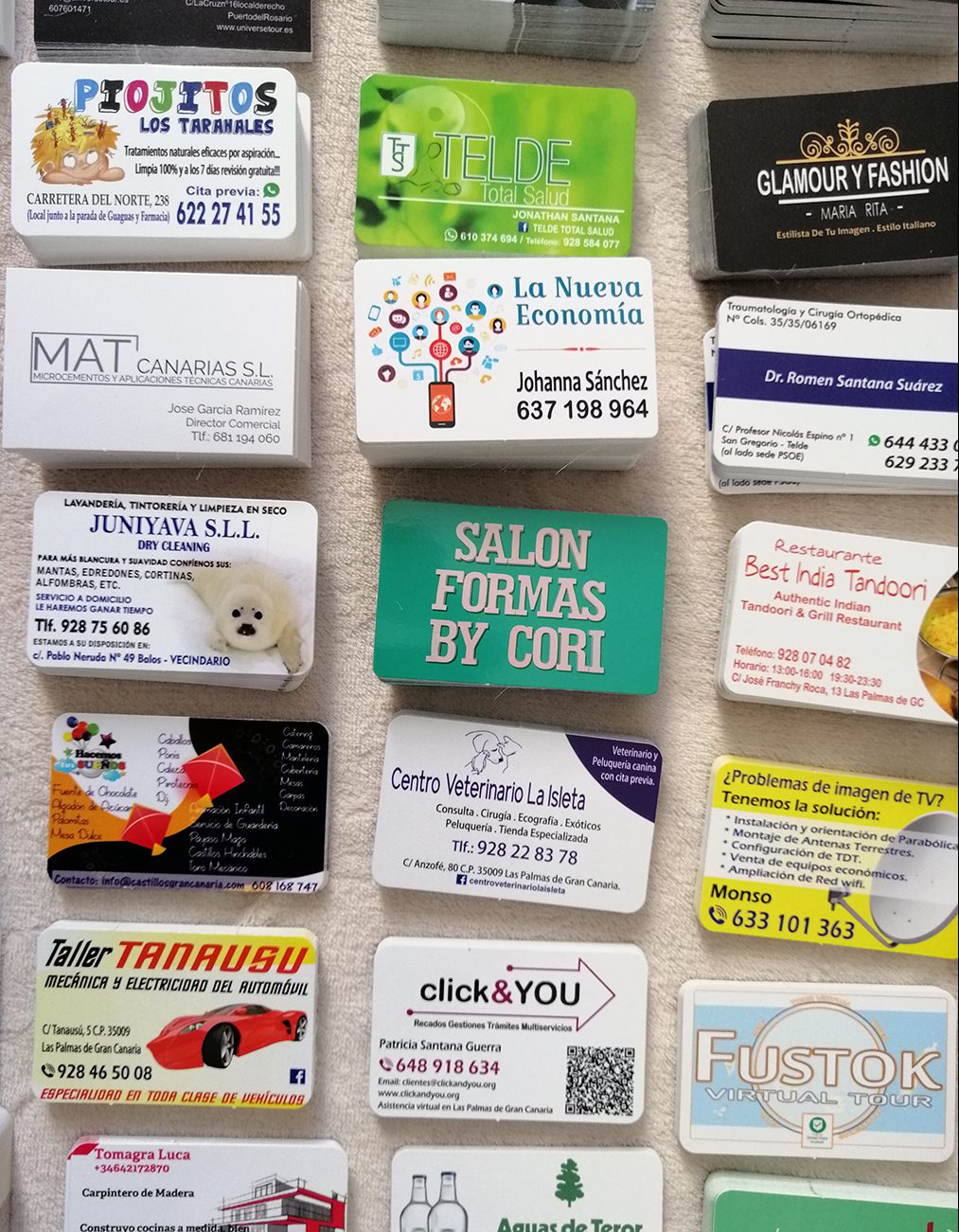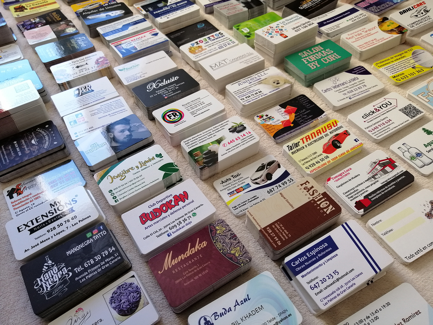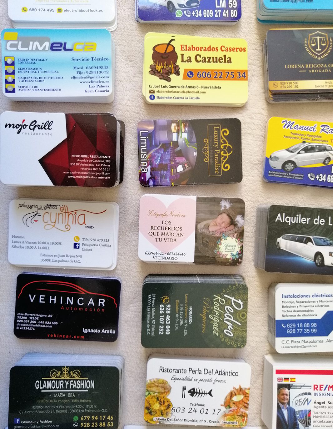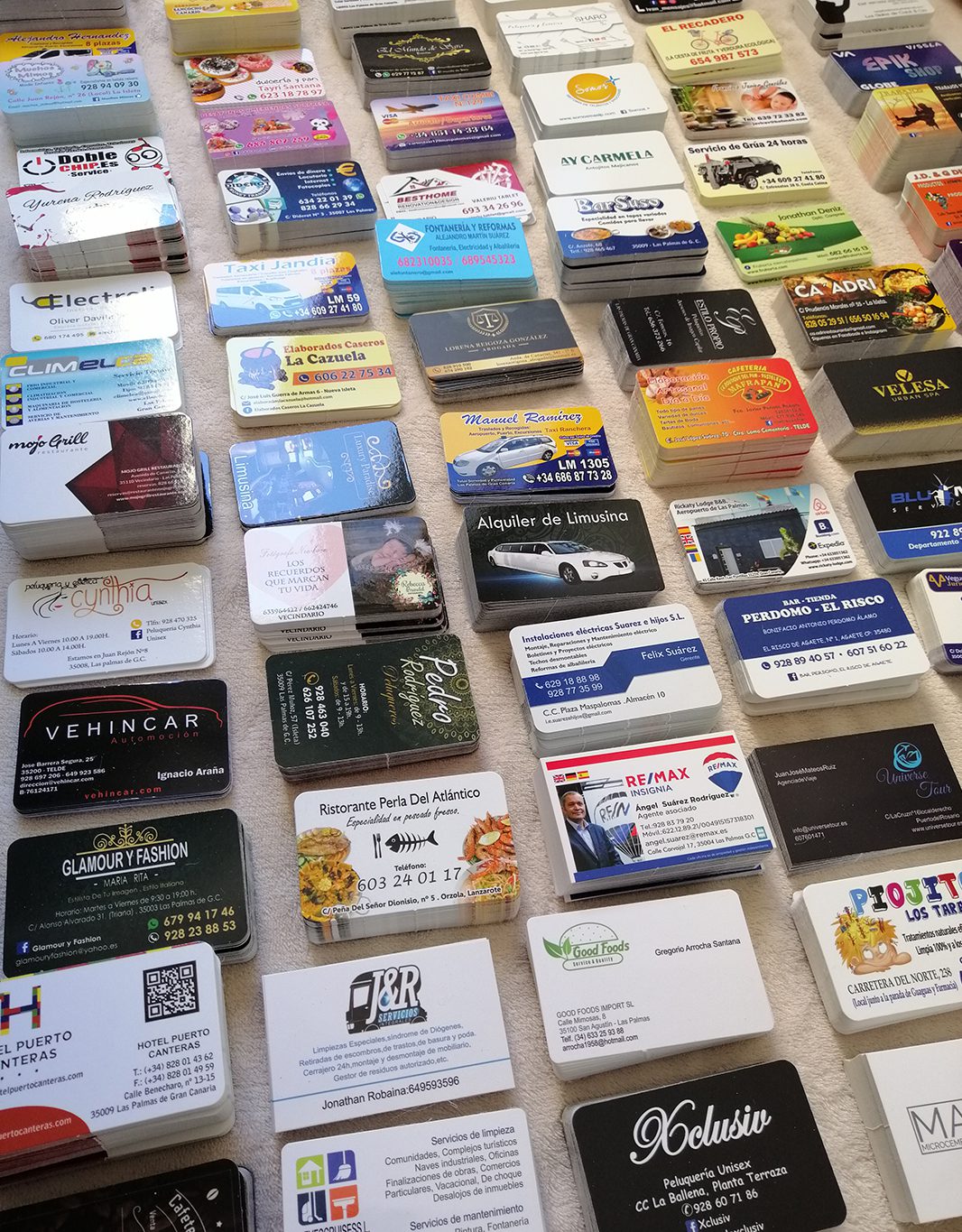 Impresión de Tarjetas de visita, Flyers, cartas de menú y pegatinas para buzoneo en grandes cantidades para tiendas de Canarias.